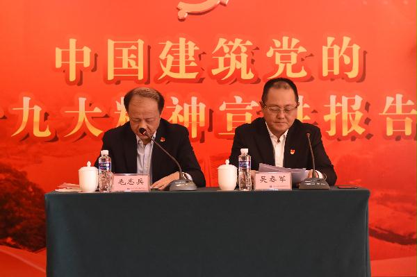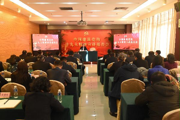 毛志兵总工程师做题为“认真学习宣传贯彻党的十九大精神 开创中国建筑改革发展党建工作新局面”的党课。毛总从“充分认识学习宣传贯彻党的十九大精神的重要时代意义”、“全面准确学习领会党的十九大精神”、“认真抓好党的十九大精神的学习宣传贯彻工作”三个方面宣讲了十九大精神。